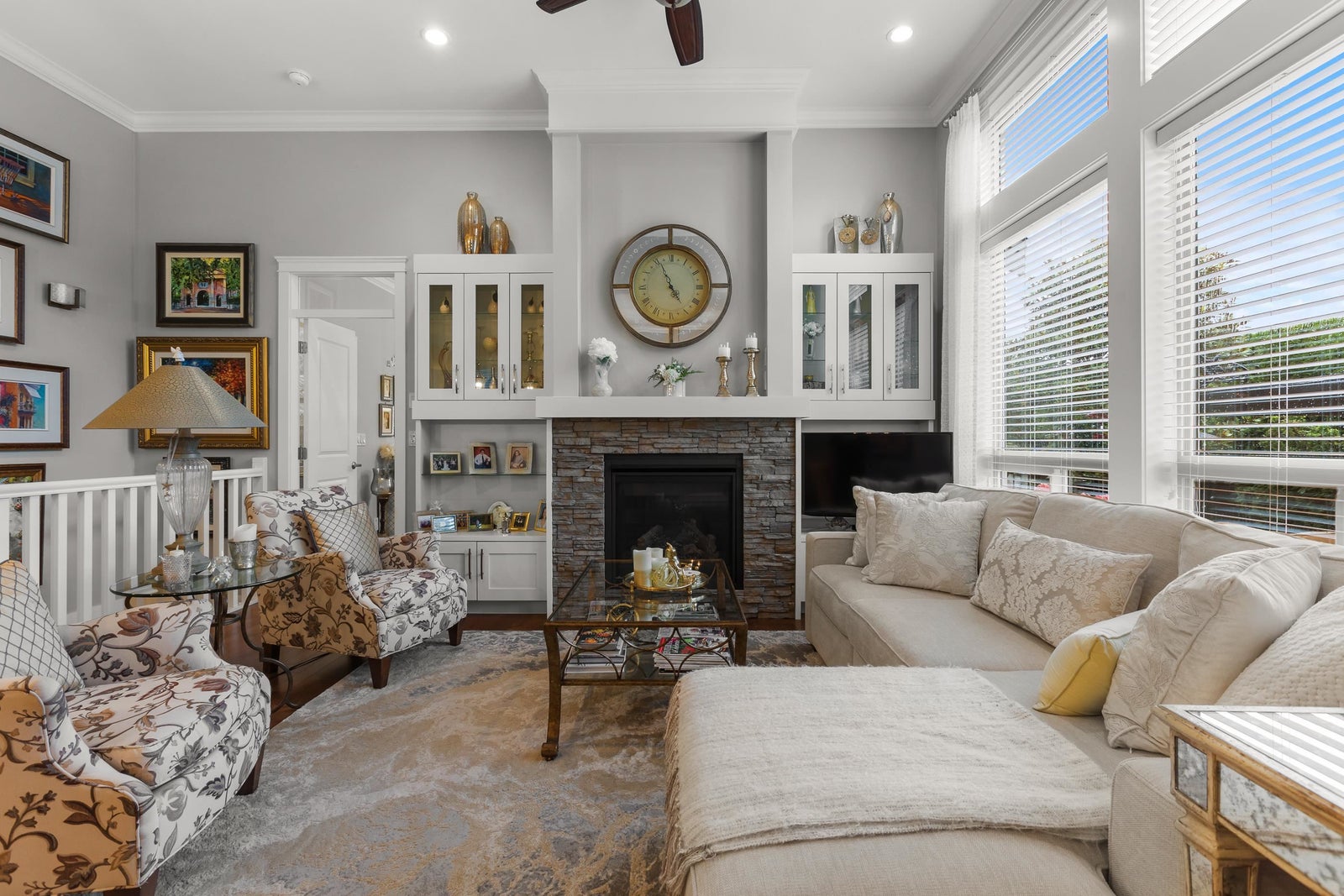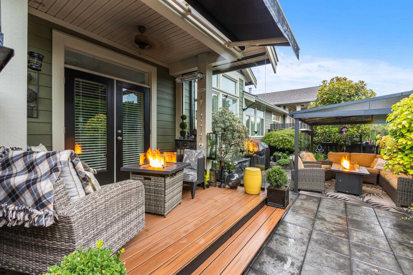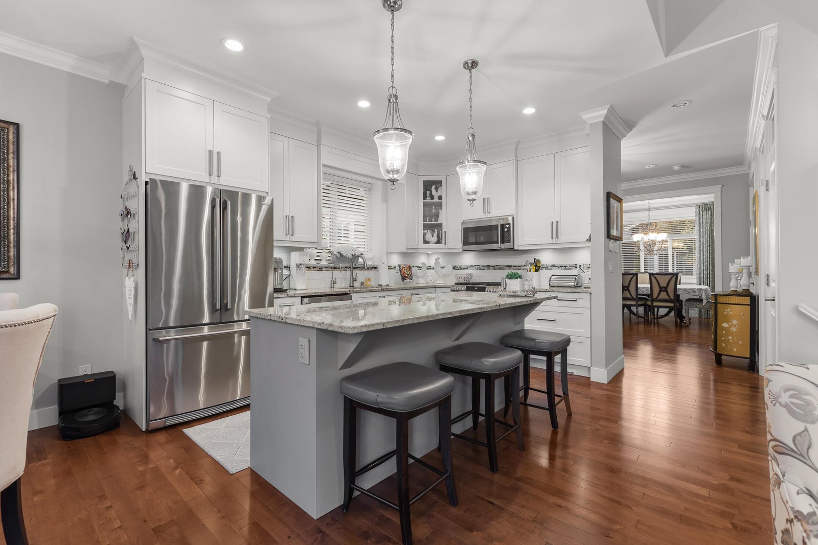 Welcome to The Greens! This rare, beautifully updated rancher with basement offers 2 beds + den and 3 baths across 2,533 sq ft of stylish living. The open layout features vaulted ceilings, hardwood floors, with gourmet kitchen, oversized island and updated appliances. The main floor primary suite includes a walk-in closet and spa-inspired ensuite. The basement offers a rec room with wet bar, guest bedroom, workshop, and plenty of storage. Enjoy year-round entertaining on the private patio with gazebo, fire tables, and protective glass. Updates in 2022 include cabinetry, ensuite, and patio. With A/C, double garage, and access to clubhouse amenities, this home blends comfort and convenience in a sought-after community.